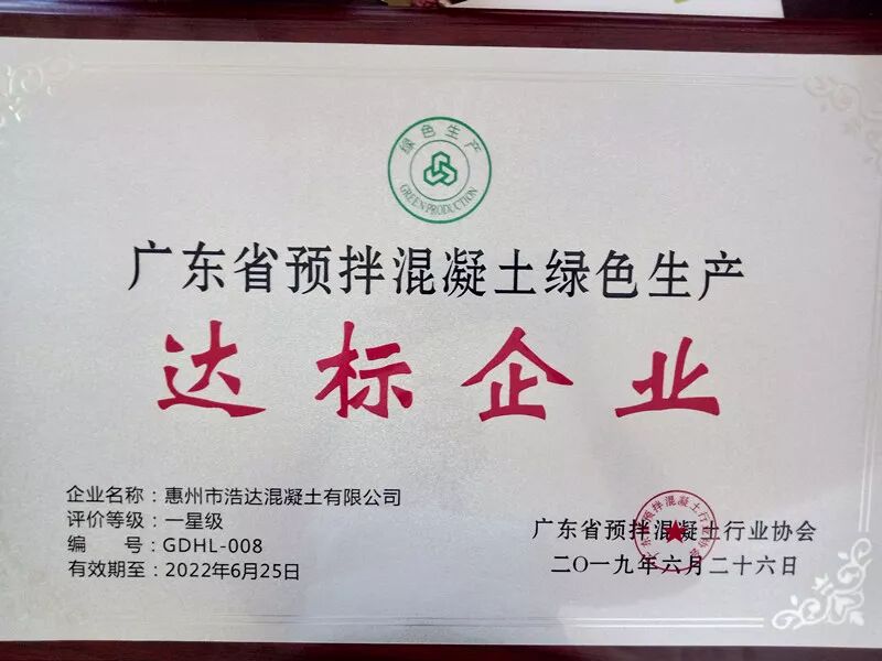 2019年6月26日,廣東省預拌混凝土(砂漿)行業第三十一次聯誼會—中聯金融服務交流會在河源召開,我集團公司屬下惠州市惠建發混凝土有限公司、惠州市新浩達混凝土有限公司獲得廣東省綠色生產“達標企業”稱號。