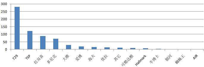 打長(zhǎng)膠的人多啊,我們看看哪個(gè)品牌最有人緣,這一次,我只給出銷(xiāo)量圖:
