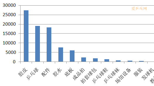 膠皮:依然是器材銷售的老大,占總銷售額的38.3%