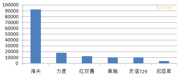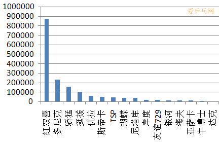 斯帝卡:緊追紅雙喜,并與身后其它品牌拉開了比較明顯的距離
